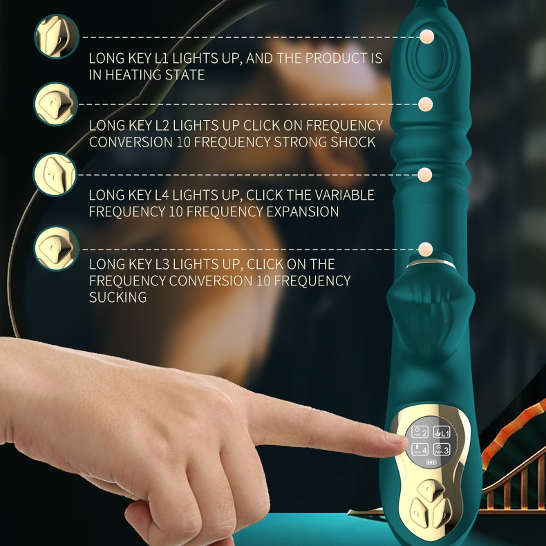 This is a multifunctional vibrator with intelligent display, quick piston extension, heating, sucking, tongue licking, and female masturbation device.